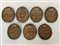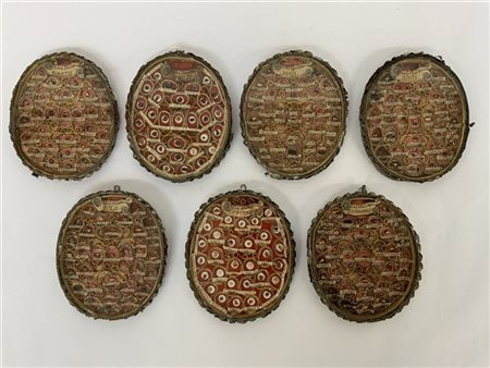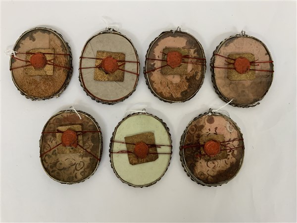 Gruppo di sette reliquiari mensili con cornici in lamina d'argento e sigilli ve