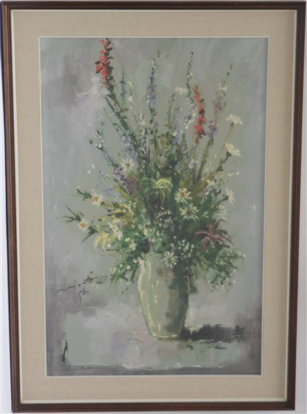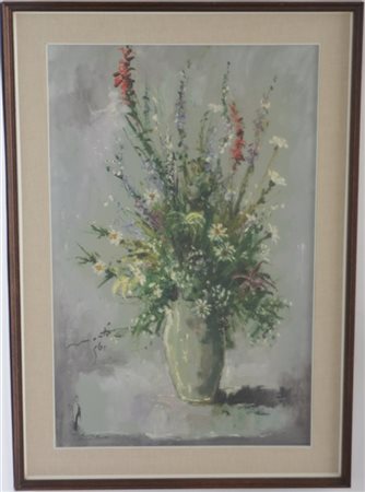 "Vaso di fiori" olio su tela (cm 85x55) Firmato e datato in basso a sinistra '961. In cornice