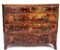 Comò lastronato in radica di noce e mogano con fronte a tre cassetti grandi e d