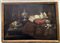 Ignoto "Natura morta con cane, limoni, spartito musicale e vasi" antico dipinto ad olio su tela (cm 75x115) In cornice