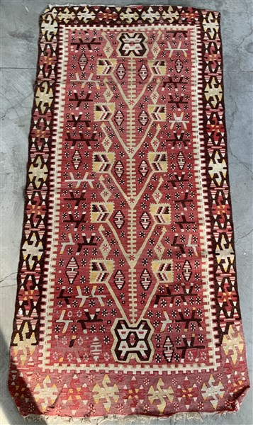 Lotto di trappeti Kilim, Anatolia, prima metà secolo XX. Decoro a motivi geometrici policromi. Uno con albero della vita su fondo rosso.