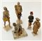 Gruppo di cinque figure modellate in terracotta con abiti in tessuto (gravi dif