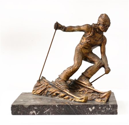Firma indecifrata "Sciatore" scultura in bronzo (H cm 26) poggiante su base qua