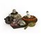 Lotto composto da cinque oggetti diversi in porcellana, stoffa, legno e plastic