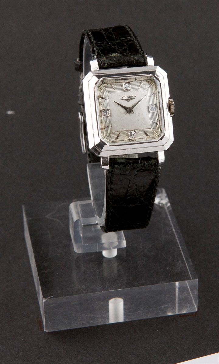LONGINES Solo tempo, anni '40 28x28 Cassa a gradini di forma, in oro bianco...