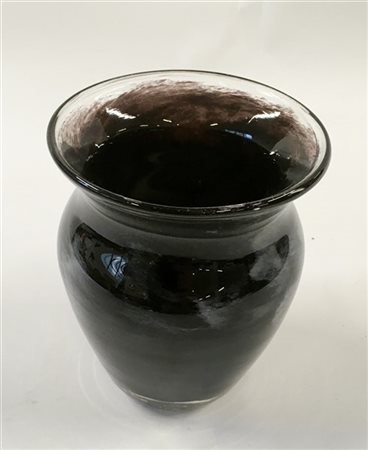 Vasetto in vetro massello incamiciato ametista. Anni '70. Firmato a punta sotto