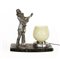 Lampada da tavolo decorata con scultura tuttotondo di Pierrot in metallo argent