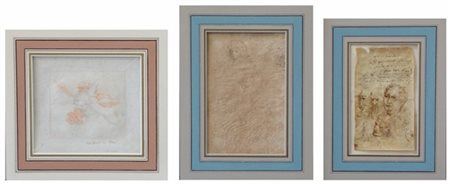Lotto composto da tre disegni di epoche diverse: "Putto in volo" matita nera e rossa su carta, iscritto in basso "Taddeo Zuccaro dal Correggio" (cm 12x13); "Schizzi di volti" penna e inchiostro bruno su pergamena (cm 18x10,5) e "Schizzi di figure" matita nera su carta (cm 22,514).