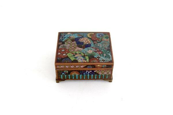 Scatolina in metallo a decoro cloisonnè decorata con fiori e motivi geometrici