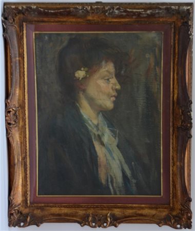 "Popolana" olio su tela (cm 60x48) Reca iscrizione in basso a destra. Al retro studio di figura femminile (Difetti e mancanze) In cornice