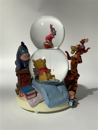 Carillon Disney con snow globe a tema "Winnie the Pooh". Vetro e resina policroma (h cm 26) (lievi difetti)