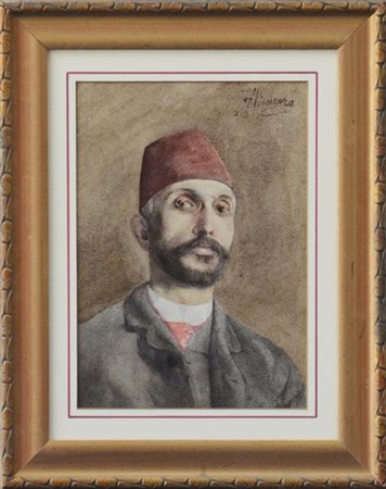 "Autoritratto" acquarello (cm 33x23) Firmato in alto a destra. In cornice