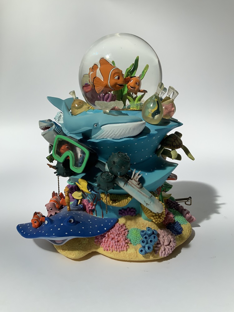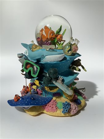 Carillon Disney con snow globe a tema "Alla ricerca di Nemo". Vetro e resina policroma (h cm 24) (difetti e mancanze)