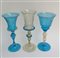 Manifattura di Murano, lotto di tre calici in vetro soffiato e acidato a profil