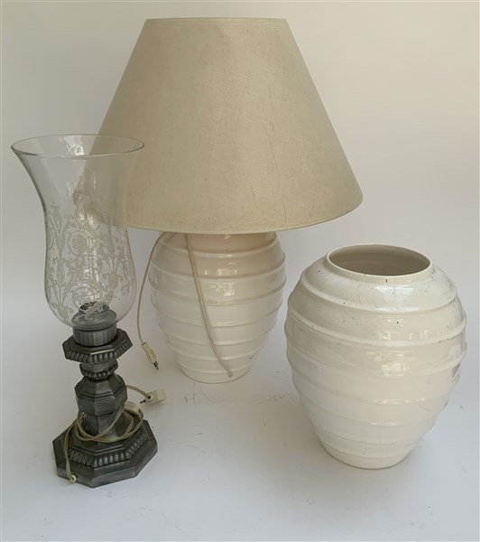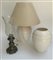 Lotto composto da due lampade diverse ed un vaso in ceramica bianca, misure div