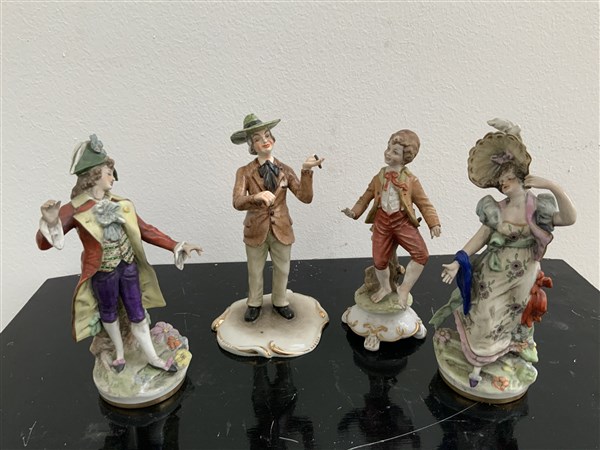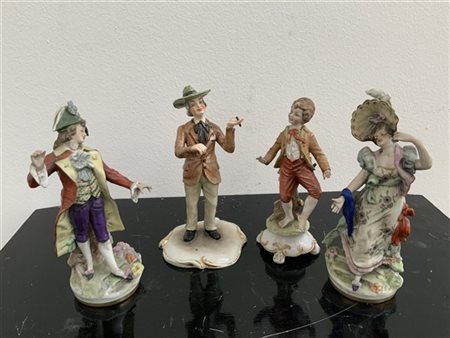 Lotto di quattro figurine in porcellana policroma, Sec.XX (h.max cm 19) (difett