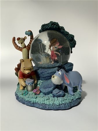 Carillon Disney con snow globe a tema "Winnie the Pooh". Vetro e resina policroma (h max cm 21) (lievi difetti)