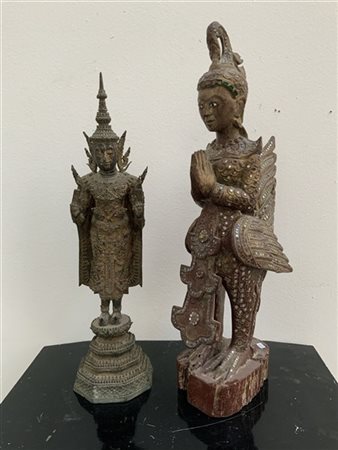 Lotto composto da un Buddha in bronzo con tracce di laccatura e un divinità in legno intagliato e parzialmente dorato