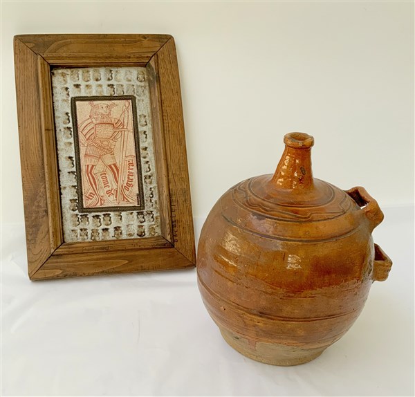 Manifatture diverse Lotto composto da una fiasca in terracotta, un centrotavol