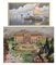 Lotto di due acquarelli raffiguranti "Scorcio con barche" e "Scorcio di villa", autori e misure diverse, uno in cornice