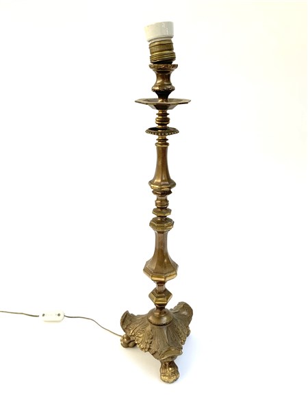Lampada da tavolo in bronzo a una luce su base tripode, paralume in tessuto bor