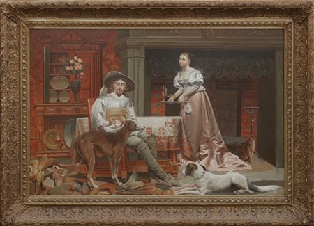 Van Der Heil "Scena d'interno" olio su compensato (cm 60x90) Firmato in basso a sinistra. In cornice