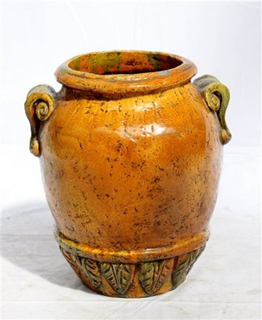 Vaso biansato portaombrelli in terracotta smaltata (h. cm 47) (difetti)