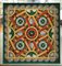 Foulard in seta nei toni del rosso verde e oro decorato con quadranti di orologio, in cornice color argento (cm 97x92) (difetti e segni d'uso)