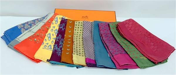 HERMES Lotto composto da dodici mini carré in seta, utilizzabili anche come poc