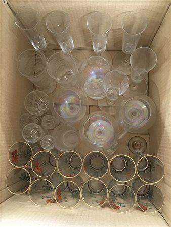 Due cartoni contenenti numerosi bicchieri di forma e decoro diverso ed altri og