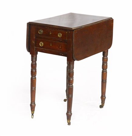 Comodino con piano a bandelle, due cassetti nella fascia, gambe tornite, piedi muniti di rotelle, Inghilterra secolo XIX (cm 53x69x38) (difetti)