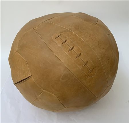 Pouf in cuoio chiaro a forma di pallone da football. Marcato Zanellato (d cm 60