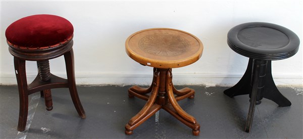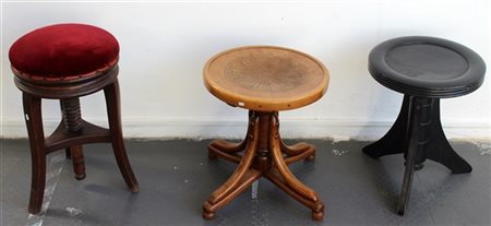 Lotto di tre sgabelli da pianoforte diversi (difetti)
