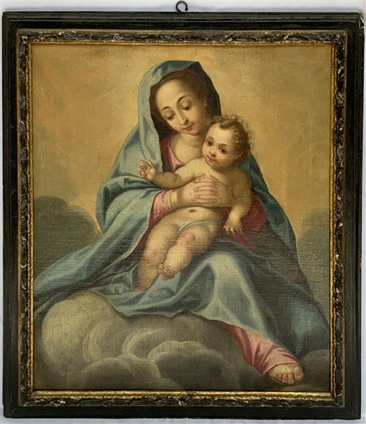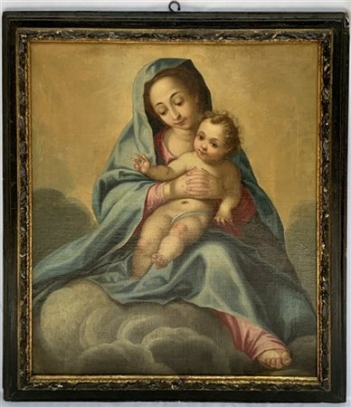 Scuola del secolo XVIII "Madonna con Bambino" olio su tela (cm 83x71). In cornice