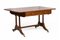 Tavolo scrittoio in noce filettato in legno chiaro,a due cassetti nella fascia, gambe a colonne binate poggianti su basi sagomate riunite da taversa, piedi muniti di rotelle. Inghilterra inizio secolo XX (cm 138x75x100) (difetti)