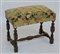 Panchetto con gambe a rocchetto riunite da traversa, seduta rivestita in tessuto operato a fiori (cm 37x52x60) (difetti)
