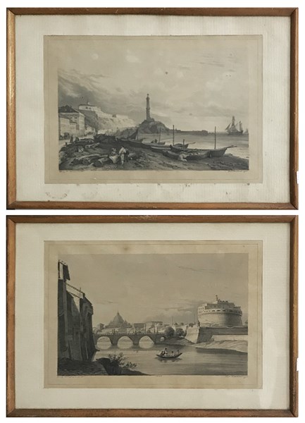 G. Gualandi "Scorci con barche" 1842 coppia di acquarelli (cm 20x28) firmati e