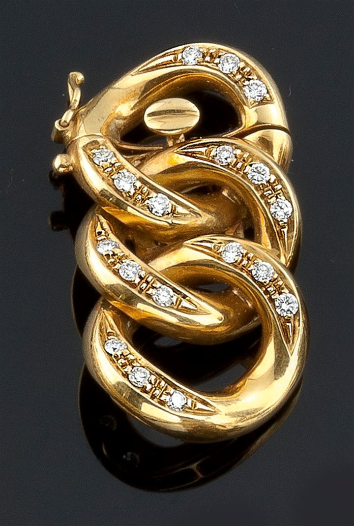 Fermaglio per collana in oro giallo a maglia intrecciata con diamanti taglio brillante per complessivi ct 0,80 ca