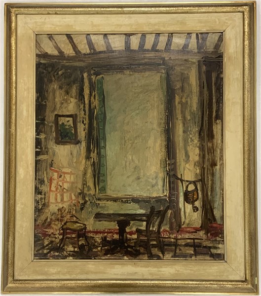 Ignoto "Interno" olio su compensato (cm 59x50) In cornice (difetti)