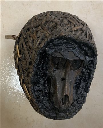 Arte africana. Scultura in legno raffigurante un volto di scimmia (h cm 21) (difetti)