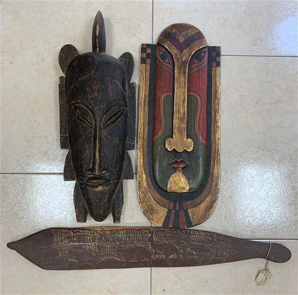 Arte africana. Lotto composto da una maschera in legno e due oggetti decorativi