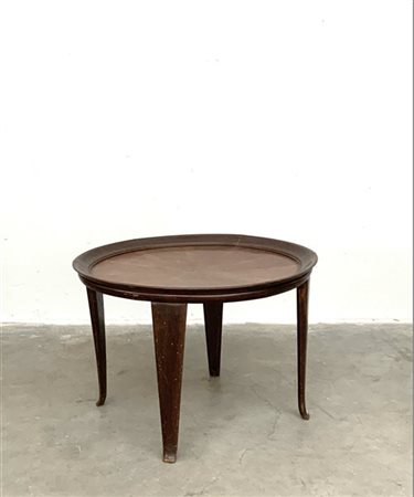 Tavolino a quattro gambe in legno massello tinto. Italia, anni '50. (h cm 47; d cm 68,5) (difetti)