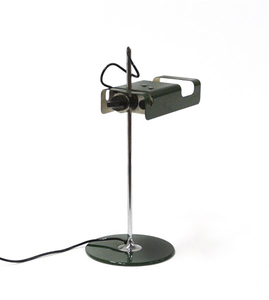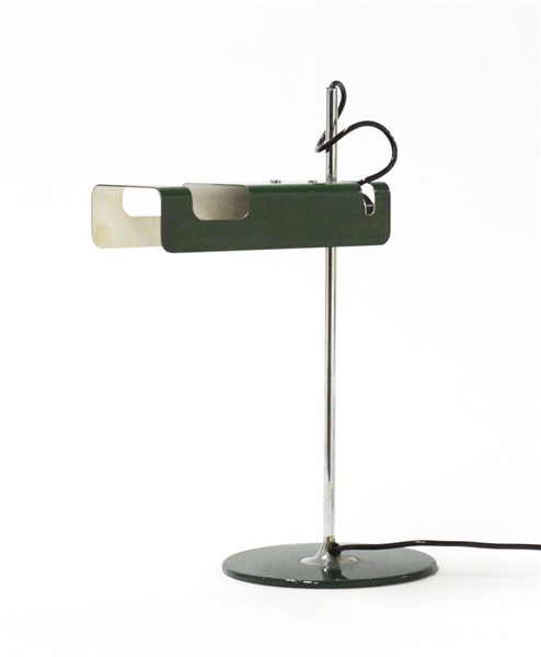 Lampada da tavolo modello "Spider". Produzione O-Luce, Italia, 1967. Acciaio cromato e alluminio smaltato verde. (h cm 42) (lievi difetti)