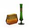 Moser Lotto di un vaso in cristallo arancione ed uno in cristallo verde con fasc
