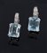 Coppia di orecchini in oro bianco, a monachella, con due acquamarine di taglio rettangolare sormontate da due triangoli in diamanti