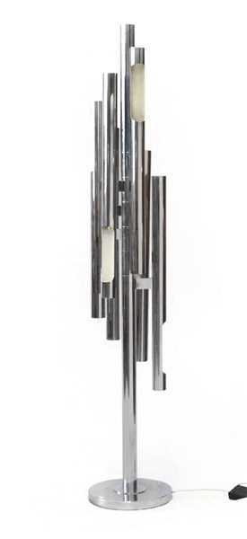 Lampada da terra ad elementi tubolari con struttura acciaio cromato e verniciato bianco. Italia, anni '70. (h cm 178) (lievi difetti)