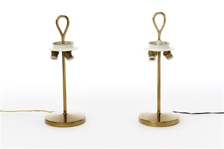 Coppia di strutture per lampade da tavolo modello "LTA4 Arenzano piccola". Produzione Azucena, Milano, 1956. Ottone. (h cm 35) (lievi difetti e mancanze)