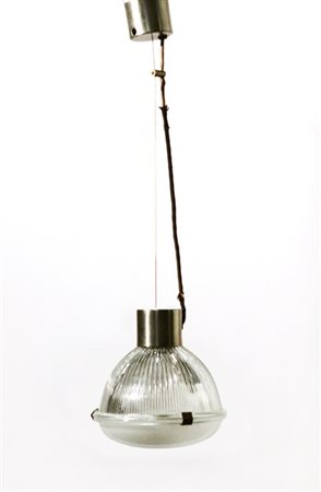 Lampada a sospensione a una luce con struttura in ottone nichelato, coppa in cristallo pressato. Italia, anni '70. (h cm 38; d cm 27) (lievi difetti)