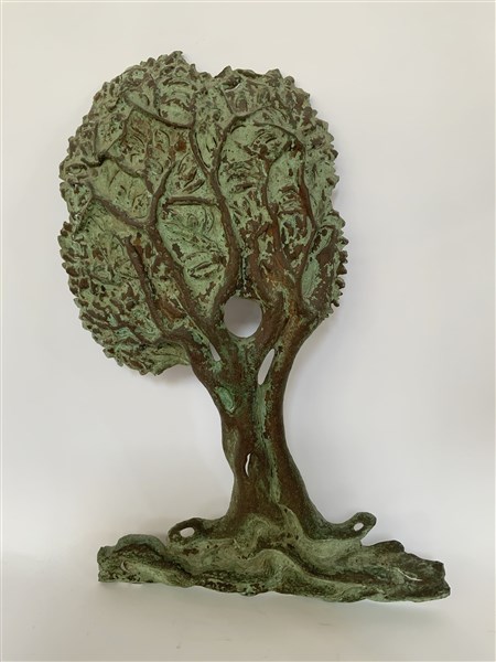 "Albero" Elemento decorativo in lamina di rame sbalzato. Anni '20/'30. (h cm 82