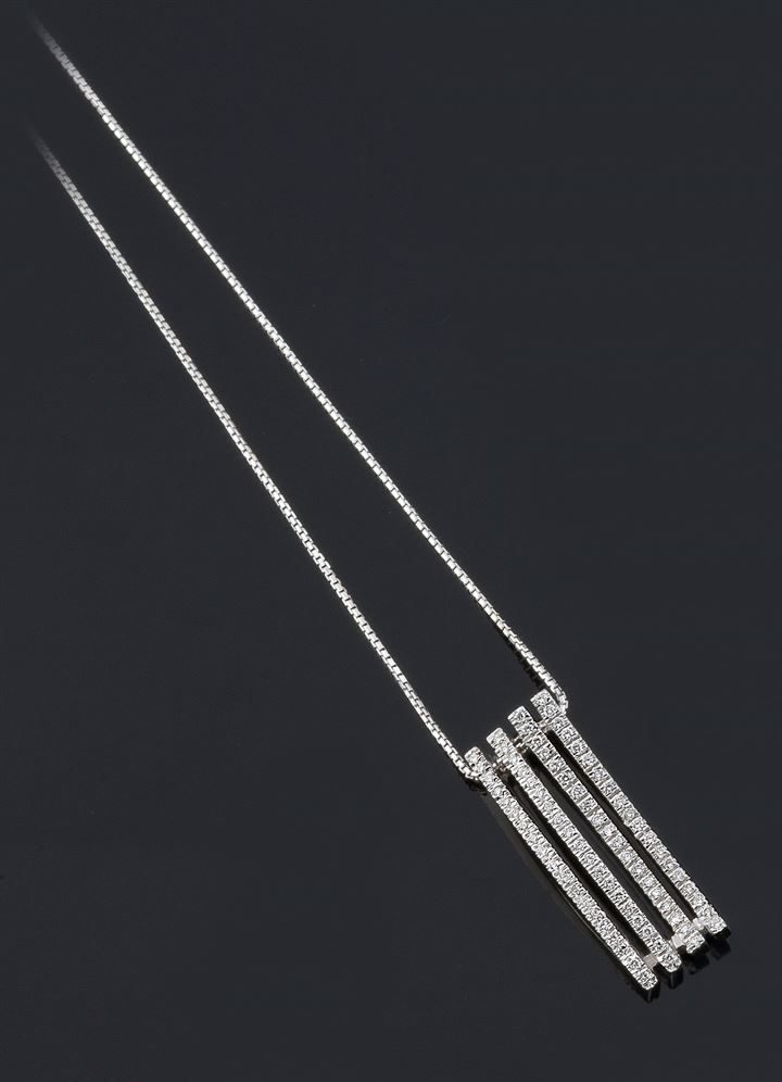 Catena con ciondolo in oro bianco composto da segmenti verticali in diamanti taglio brillante per